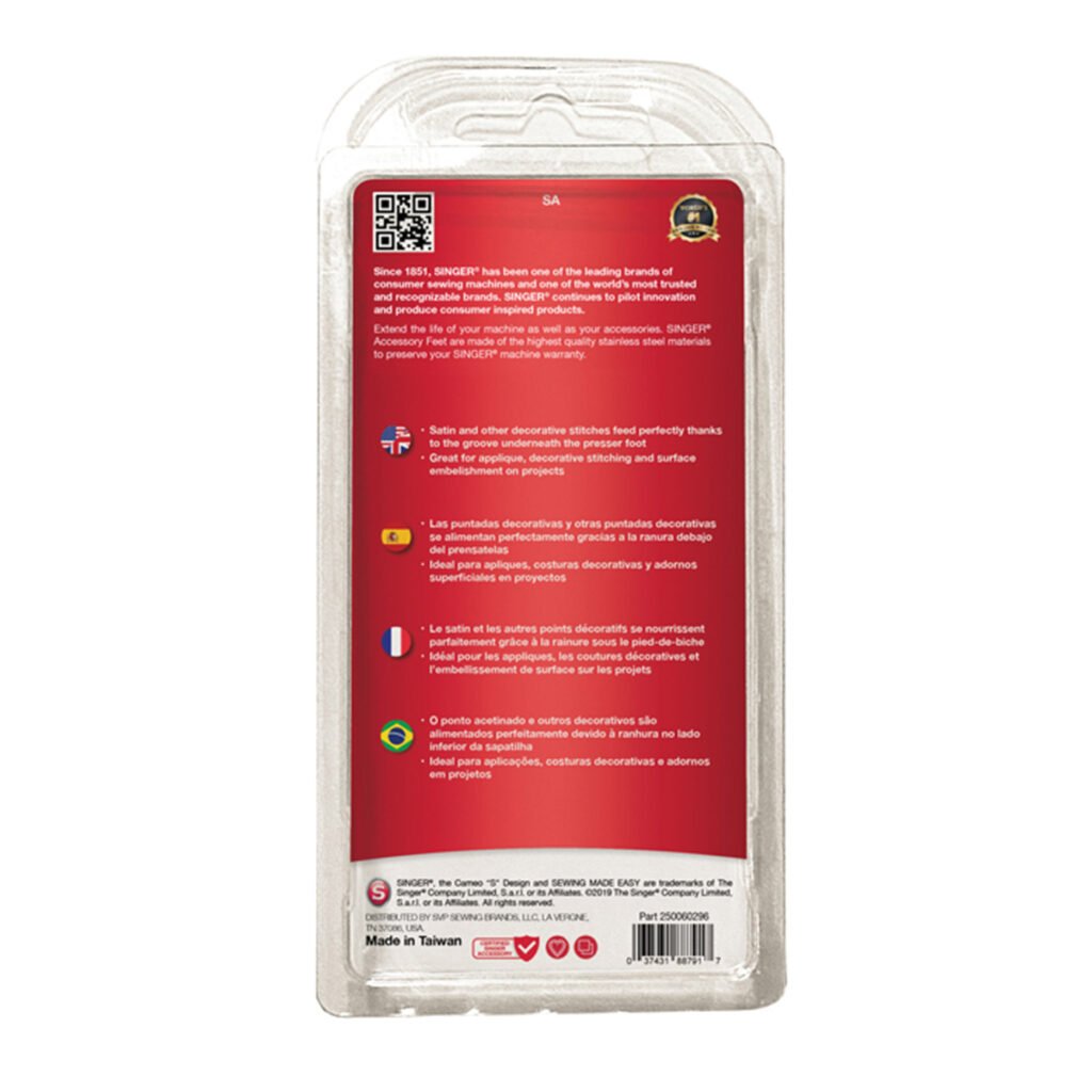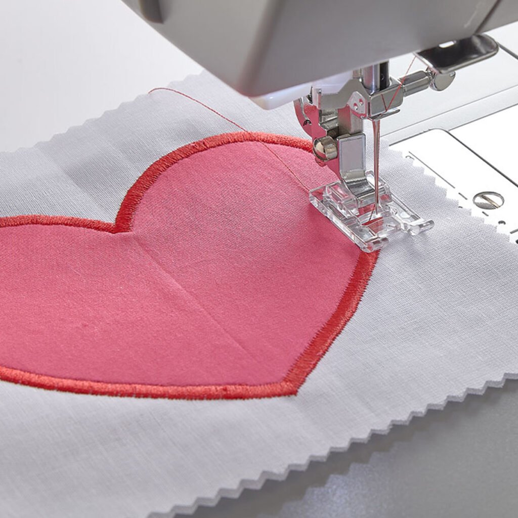 Las puntadas decorativas se alimentan perfectamente gracias a la ranura debajo del prensatelas.
