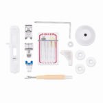 • Incluye 4 prensatelas básicos para realizar funciones como ojales perfectos en un solo movimiento, cierres y todo tipo de costura en mercería.