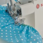 Estira y coloca elástico estrecho en un solo paso. Gira el tornillo en la parte delantera del prensatelas para ajustar la cantidad del estiramiento del elástico.