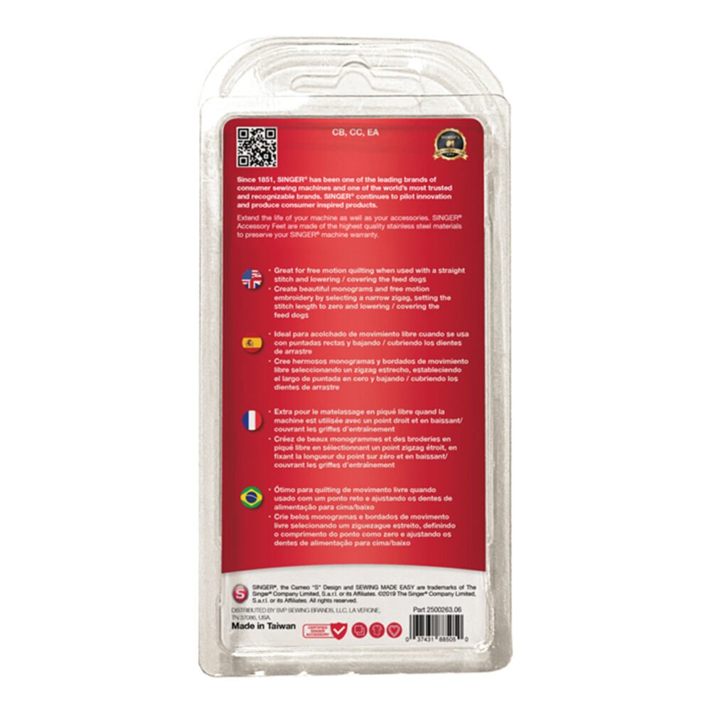 Ideal para trabajos de costura en movimiento libre como acolchados, zurcidos o bordado libre.