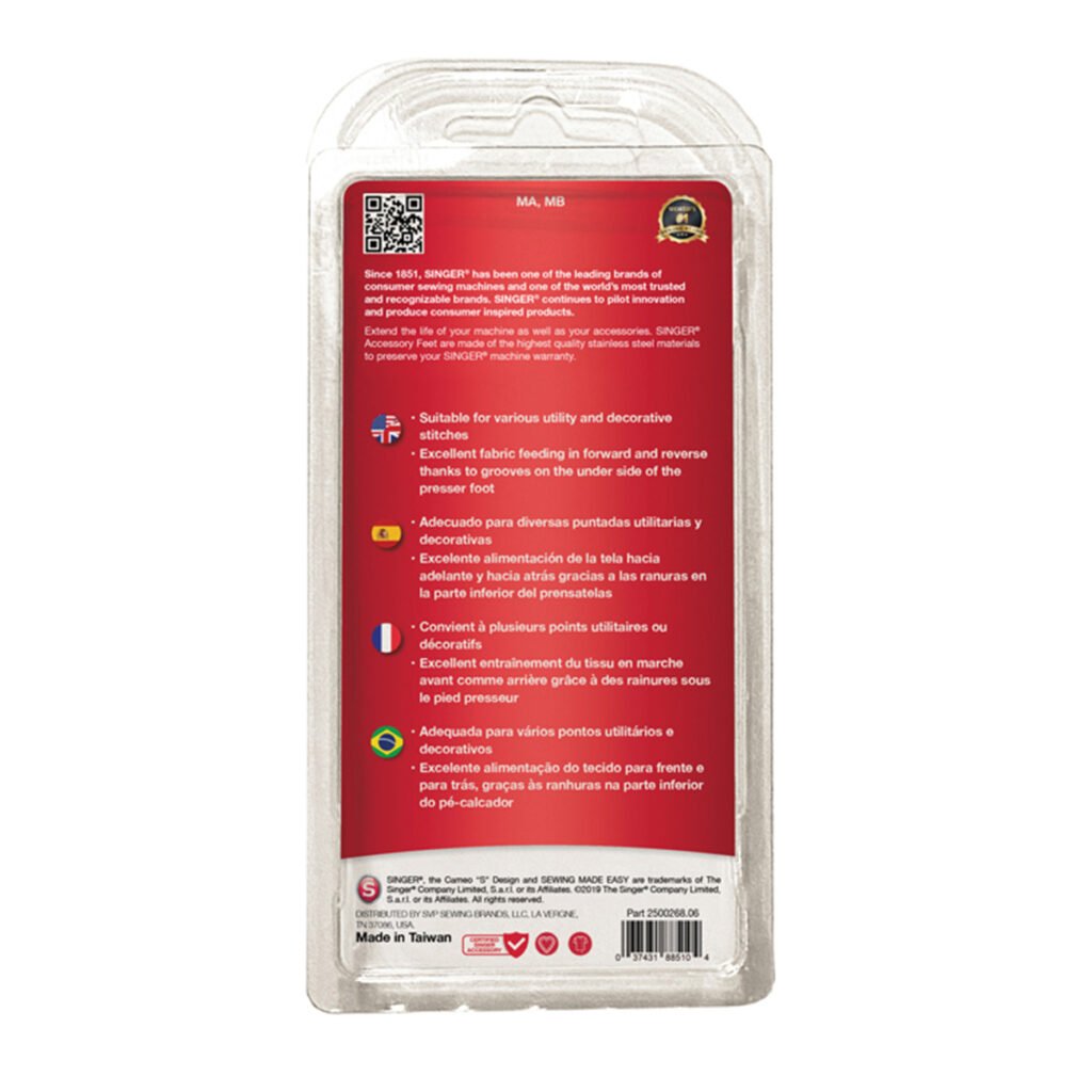 Excelente alimentación de la tela hacia adelante y hacia atrás gracias a las ranuras en la parte inferior del prensatelas.
